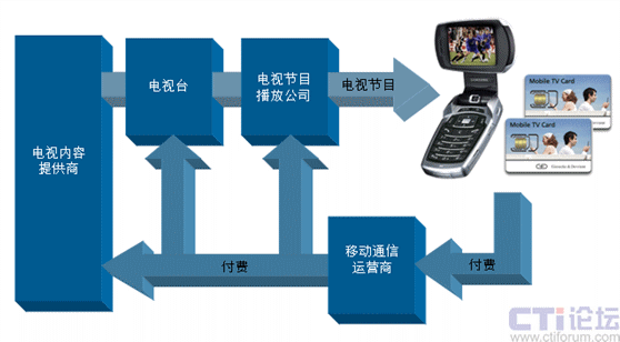 該方式實(shí)現(xiàn)手機(jī)電視,是基于DMB(數(shù)字多媒體廣播)技術(shù),通過(guò)DMB衛(wèi)星提供下行廣播網(wǎng)絡(luò)傳輸手機(jī)電視,用戶手機(jī)終端上集成安裝直接接收DMB衛(wèi)星信號(hào)的模塊組成雙模手機(jī),就可以接收DMB衛(wèi)星廣播的手機(jī)電視。