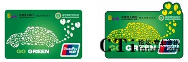 光大銀行的零碳環(huán)保信用卡以“GO GREEN”為口號(hào),倡導(dǎo)大家零炭出行,零碳生活,通過(guò)減少碳排放量來(lái)改善我們的環(huán)境。此卡片的創(chuàng)意設(shè)計(jì)主題是一輛由各種動(dòng)植物組成汽車,車尾噴出的尾氣由樹(shù)葉組成,借此告誡我們?nèi)祟惖默F(xiàn)代化生活是以我們的伙伴——各種動(dòng)物及植物的犧牲為代價(jià)的,時(shí)時(shí)提醒大家要關(guān)愛(ài)我們的生存環(huán)境,少開(kāi)車,減少碳排放。