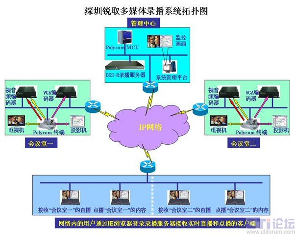 網(wǎng)絡(luò)內(nèi)的任意一臺計算機可通過IE瀏覽器直接登錄到管理中心的錄播服務(wù)器(需要管理員授權(quán)),可以接收實時的會議直播內(nèi)容,也可以對錄制好的文件進行點播回放。
