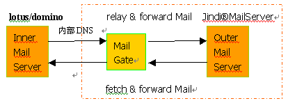 這種方案在有一定規(guī)模的企業(yè)比較典型,內(nèi)部網(wǎng)為Lotus/domino或Exchange的群件系統(tǒng),為內(nèi)部用戶提供smtp, pop3