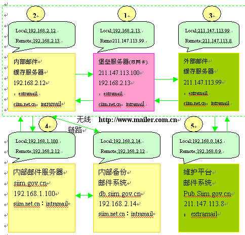 1.內(nèi)外網(wǎng)物理隔離郵件路由方案示意圖