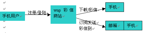 用戶通過手機注冊我們的另一項服務(wù)--"無限郵"業(yè)務(wù),可以得到我們?yōu)榭蛻魷蕚涞氖謾C郵箱系統(tǒng),通過這個系統(tǒng)用戶能夠?qū)崿F(xiàn)用手機終端完成郵件的收發(fā)功能,更重要的是用戶可以以這套系統(tǒng)為中介實現(xiàn)多媒體信息的從網(wǎng)站的下載和對手機終端的發(fā)送。
