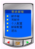 進(jìn)入移動(dòng)郵件系統(tǒng)后,可分別選擇"登陸郵箱、郵箱注冊(cè)、找回密碼、返回上級(jí)"來(lái)進(jìn)行下一步操作。