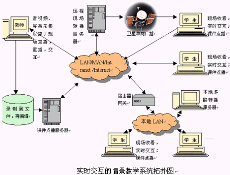 遠程教育系統(tǒng)它是學校的教室課堂在互聯(lián)網(wǎng)上的延伸,突破了教室空間的概念,它把任何區(qū)域的教師和學生緊密聯(lián)結(jié)在一起。