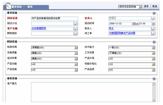 對(duì)于所有客戶投訴和服務(wù)派工的回訪調(diào)查。