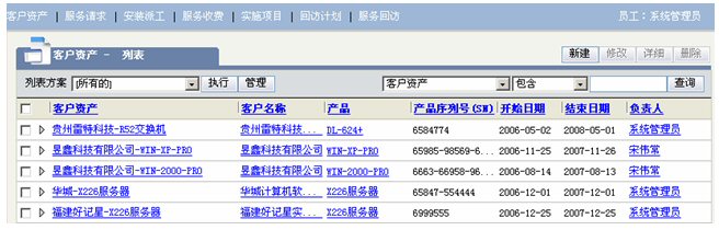 客戶資產(chǎn)/服務(wù)請求/服務(wù)派工/服務(wù)收費/回訪計劃/服務(wù)回訪