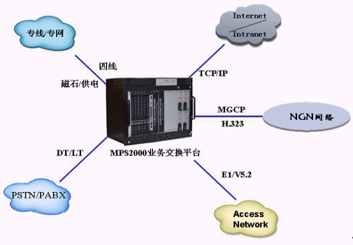 MPS2000增值業(yè)務(wù)應(yīng)用交換平臺(tái)豐富的信令協(xié)議和接口,使平臺(tái)具備了強(qiáng)大的組網(wǎng)能力。