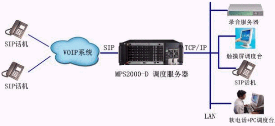 - MPS2000-D調(diào)度服務(wù)器作為一款I(lǐng)P指揮調(diào)度系統(tǒng)通過SIP協(xié)議,接入VOIP系統(tǒng),實(shí)現(xiàn)對IP終端用戶的調(diào)度控制;