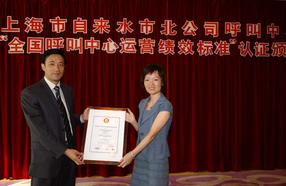 2004年9月16日,上海自來水市北有限公司正式通過《全國呼叫中心運營績效標準》(CCCS-PQ)認證(四星級客戶服務中心) ,成為中國公用事業(yè)第一家,也是上海地區(qū)首家通過此認證的呼叫中心。