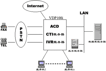 基于VDP100i構(gòu)建的CALL CENTER應用系統(tǒng)如下圖: