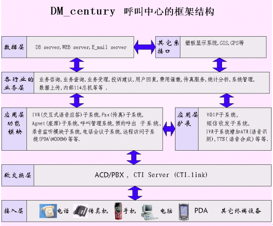 2、DM大型呼叫中心系統(tǒng)接入平臺(tái)的結(jié)構(gòu)