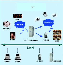 EASY CALL是基于整合式呼叫中心平臺的客戶服務(wù)中心系統(tǒng),系統(tǒng)可分為座席、IVR、WEB服務(wù)和業(yè)務(wù)幾部分。該系統(tǒng)支持?jǐn)?shù)字中繼和模擬中繼,提供普通模擬座席和IP座席,支持異地遠(yuǎn)端座席,提供了實(shí)用的班長監(jiān)聽、插話、會議等功能。