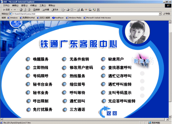 包括:公司介紹、網(wǎng)絡(luò)情況、業(yè)務(wù)介紹、受理手續(xù)、資費(fèi)標(biāo)準(zhǔn)、營(yíng)業(yè)網(wǎng)點(diǎn)、電信行政法規(guī)、電信行業(yè)管理、地方性法規(guī)、電信信息及知識(shí)等內(nèi)容。