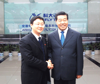 12月19日上午,中共中央政治局常委、全國(guó)政協(xié)主席賈慶林一行在安徽省委書(shū)記郭金龍、省長(zhǎng)王金山等省市領(lǐng)導(dǎo)陪同下來(lái)到國(guó)家863計(jì)劃成果產(chǎn)業(yè)化基地——科大訊飛公司視察,賈慶林主席對(duì)科大訊飛在中文語(yǔ)音技術(shù)和產(chǎn)業(yè)化方面的成績(jī)給予充分肯定。上午8時(shí)30分,賈主席一行抵達(dá)訊飛語(yǔ)音產(chǎn)業(yè)大樓。中國(guó)科技大學(xué)黨委書(shū)記郭傳杰、科大訊飛總裁劉慶峰博士、基地總工陳濤及基地工作人員熱烈歡迎賈主席的到來(lái)。