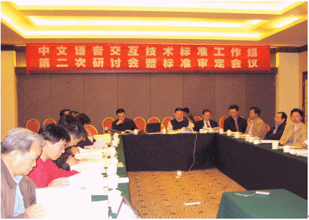 2005年10月24日,中文語(yǔ)音交互技術(shù)標(biāo)準(zhǔn)工作組在北京九華山莊召開(kāi)了"中文語(yǔ)音交互技術(shù)標(biāo)準(zhǔn)工作組第二次全體會(huì)議暨標(biāo)準(zhǔn)審定會(huì)議"。本次會(huì)議除了進(jìn)行標(biāo)準(zhǔn)工作組年度工作討論外,還進(jìn)行了兩項(xiàng)國(guó)家語(yǔ)音標(biāo)準(zhǔn)的審議。參加這次會(huì)議的代表除工作組全體成員單位外,還邀請(qǐng)了8位業(yè)界著名的語(yǔ)音和標(biāo)準(zhǔn)化專家參加對(duì)兩項(xiàng)國(guó)家標(biāo)準(zhǔn)的審議。其中在本次會(huì)議上待審定的兩項(xiàng)國(guó)家標(biāo)準(zhǔn)為安徽中科大訊飛信息科技有限公司提出的《中文語(yǔ)音合成系統(tǒng)通用技術(shù)規(guī)范》(20030188-T-339)和中國(guó)科學(xué)院自動(dòng)化研究所提出的《中文語(yǔ)音識(shí)別系統(tǒng)通用技術(shù)規(guī)范》(20030190-T-339)。