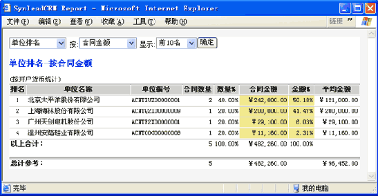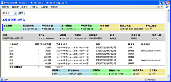 例如,在SynleadCRM"合同"工作界面,過濾出所需的定單記錄集,可生成以下復(fù)雜報(bào)表