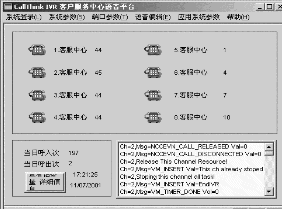 ● 監(jiān)控接口:對IVR通道進(jìn)行實時監(jiān)控,一旦超出規(guī)定值或者系統(tǒng)部件不能正常運行,能夠立即以