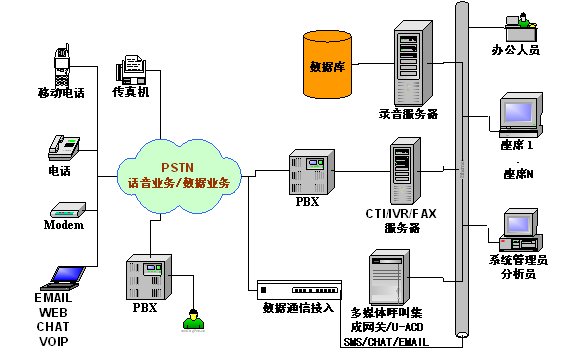 - 采用國內(nèi)外高性能程控交換機,具有標(biāo)準(zhǔn)CTI接口。