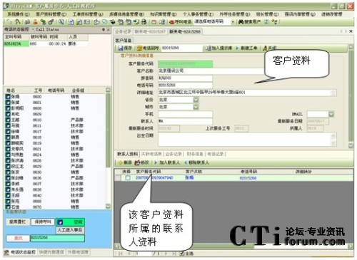 當有電話來電時,系統(tǒng)顯示來電號碼及來電人員的客戶資料信息;
