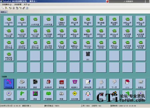 調(diào)度員通過(guò)觸摸屏(或者鍵盤(pán)鼠標(biāo))控制操作調(diào)度系統(tǒng),操作臺(tái)可以使用12個(gè)功能頁(yè)頁(yè)面。每個(gè)頁(yè)面共有22個(gè)功能按鍵和55個(gè)調(diào)度業(yè)務(wù)按鍵,55個(gè)調(diào)度業(yè)務(wù)按鍵可以根據(jù)具體調(diào)度業(yè)務(wù)需要靈活地編輯設(shè)置成直通呼叫鍵或組呼鍵。