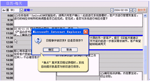 ·一旦主題、開(kāi)始時(shí)間或結(jié)束時(shí)間有變化,在您處理其它工作之前,系統(tǒng)將自動(dòng)提示您是否保存剛才的修改。