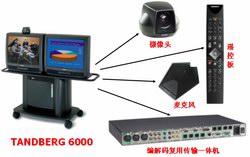 會議系統(tǒng)的組成非常簡單,每個會場安放一臺視頻會議終端,終端接上電視機作為回顯設(shè)備、接上網(wǎng)絡(luò)作為傳輸媒介就可以了。一臺終端通常有一臺核心編解碼器、一個攝像頭,一個全向麥克風以及一個遙控器。核心編解碼將攝像頭和麥克風輸入的圖像及聲音編碼通過網(wǎng)絡(luò)傳走,同時將網(wǎng)絡(luò)傳來的數(shù)據(jù)解碼后將圖像和聲音還原到電視機和音響上,即實現(xiàn)了與遠端的實時交互。終端通過呼叫IP地址或ISDN號碼進行連接(專線無需撥號)。但在有三點會場就必須采用MCU(視頻會議多點控制單元)進行管理。