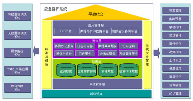 應(yīng)急基礎(chǔ)平臺是基于先進信息技術(shù)、網(wǎng)絡(luò)技術(shù)、GIS技術(shù)、通信技術(shù)和應(yīng)急信息資源基礎(chǔ)上的,充分利用現(xiàn)有資源,依托政府系統(tǒng)電子政務(wù)建設(shè),建立統(tǒng)一應(yīng)急指揮網(wǎng)絡(luò)平臺,實現(xiàn)緊急事件報警的統(tǒng)一接入與交換。
