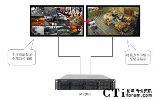 CTI論壇(ctiforum)10月16日消息: 科達(dá)近日發(fā)布的NVR新品:NVR2860將為用戶帶來全新高清雙屏顯示的性能體驗(yàn)。這款NVR2860同時(shí)具備2路VGA和1路HDMI高清視頻輸出接口,配合強(qiáng)勁的視頻解碼處理性能,NVR2860可實(shí)現(xiàn)高清雙屏顯示功能,幫助用戶既能掌控監(jiān)控全局,又不忽略重點(diǎn)細(xì)節(jié)。
