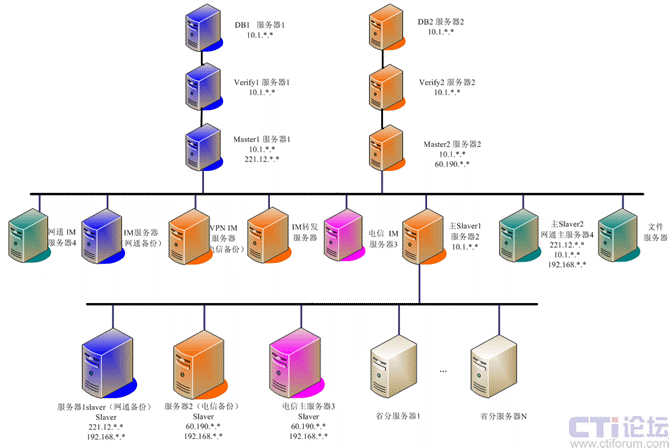 - 多級(jí)架構(gòu)部署:適應(yīng)安邦保險(xiǎn)的網(wǎng)絡(luò)架構(gòu),系統(tǒng)采用服務(wù)器三級(jí)集群部署,這也是網(wǎng)動(dòng)該平臺(tái)的特色樹型結(jié)構(gòu)。