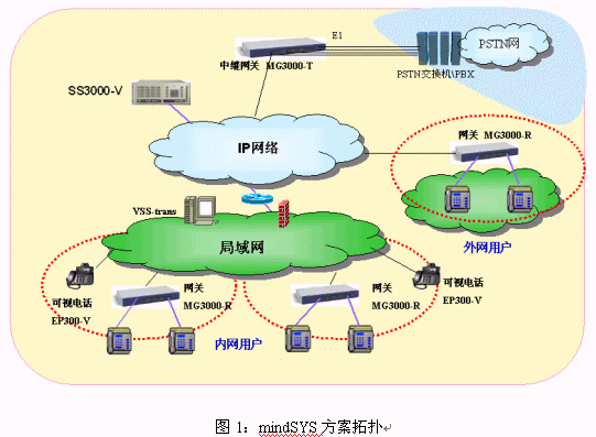 mindSYS解決方案基于軟交換技術構建,是專門為了解決行業(yè)用戶、虛擬運營商的數據、語音、視頻等綜合業(yè)務提出的,在解決方案中,把企業(yè)的專網和公網連接了起來,企業(yè)使用IP語音技術可以將語音、數據和多媒體通信融合在一個集成的網絡中,實現了廣域網內端到端設備的互打,穿透NAT,能控制數據流量,保證語音質量,充分利用企業(yè)租用的數據線路資源,節(jié)省長途話費等等。解決了與企業(yè)內部通信系統(tǒng)無縫對接技術等技術難題,為用戶提供真正享受的端到端的VoIP語音服務,提高企業(yè)的辦公效率,并且增強企業(yè)的綜合競爭力,使得現代化企業(yè)在信息化和辦公自動化方面走在同行業(yè)的前列。