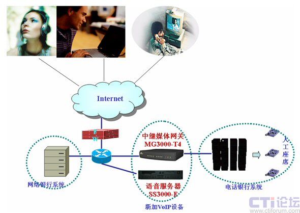提高安全性,平臺位于防火墻后,不設(shè)公網(wǎng)地址:眾所周知,VoIP的通話必須要有一個在公網(wǎng)上的平臺來控制。但由于銀行方面的安全性要求,軟交換平臺必須位于防火墻之后,并且不能配置真實(shí)的公網(wǎng)IP。為了適應(yīng)此要求,高鴻公司的軟交換平臺支持NAT后的工作模式。