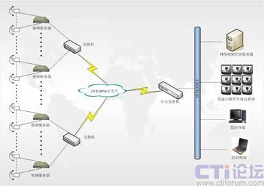 本系統(tǒng)網(wǎng)絡(luò)傳輸采用有線、光纖及無線相結(jié)合的方式,在有條件的地方采用有線的方式,傳輸距離較遠時采用光纖傳輸,在布線比較困難的情況下采用無線傳輸?shù)姆绞健?br />