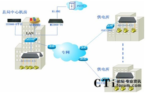 10個供電所部署MG3000-R32接入網(wǎng)關(guān),每個供電所提供1臺設(shè)備,支持32部電話接入。