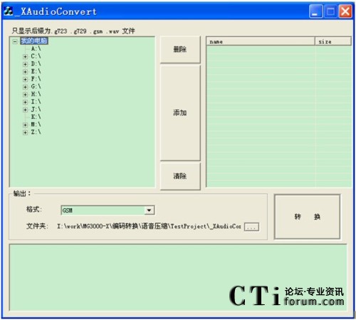 通過上傳方式提供的語音文件,需要通過軟件AudioConverter把wav格式轉換成MG3000-X所使用的文件格式。如下圖所示: