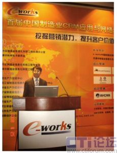 MyCRM于4月25日在天津參加了由e-works 主辦的主題為“挖掘營銷潛力,提升客戶價值”的“首屆中國制造業(yè)CRM應用與網絡營銷年會”。國內外優(yōu)秀知名CRM廠商MyCRM、微軟、賽捷、TurboCRM齊集本屆年會。并就中國制造業(yè)CRM應用及圍繞中國制造企業(yè)如何進行管理創(chuàng)新、營銷創(chuàng)新和服務創(chuàng)新等方面進行了演講。