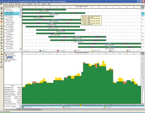 eQueue人力資源管理系統(tǒng)允許管理者在實(shí)施新的服務(wù)標(biāo)準(zhǔn)之前對(duì)調(diào)整帶來(lái)的影響進(jìn)行檢測(cè)。What-If功能可以被用于檢測(cè)各種不同的全職和兼職座席服務(wù)混合比例對(duì)成本和服務(wù)級(jí)別影響。