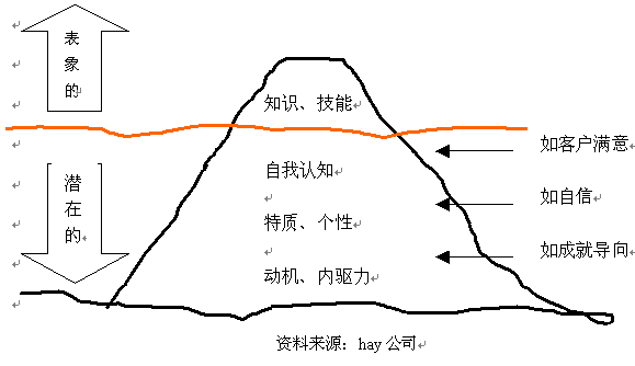 根據冰山理論,作為冰山水面下的部分,就是我們通常所說的"潛能",從上到下的深度不同,則表示被挖掘和感知的難易程度不同。在水下越深,通常越不容易被挖掘和感知。而在水面上的表象部分,即人的知識、技能則易于被感知。