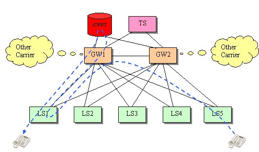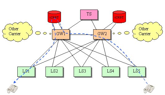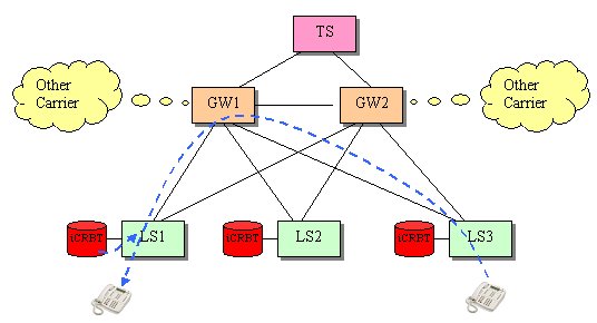 圖5 每個端局交換機(jī)配置一套iCRBT系統(tǒng)(有迂回)