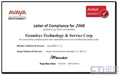 2008年7月 —Grandsys(宏盛高新技術(shù)有限公司)宣布其自創(chuàng)品牌[Grandsys LOG8000 錄音與質(zhì)檢解決方案]正式通過AVAYA DevConnect 的認證。Grandsys正是全球為數(shù)不多的已經(jīng)通過該項認證的AVAYA 合作伙伴之一,包含知名廠家Nice及Verint等,這代表Grandsys的技術(shù)已達到國際知名廠家的水平, 國內(nèi)客戶也因此有機會享受到最優(yōu)質(zhì)的產(chǎn)品及服務。