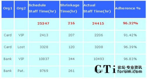 缺點(diǎn)是,此報(bào)表顯示出的只是表定出席人數(shù),而非實(shí)際現(xiàn)場(chǎng)出席人數(shù),故在呼叫中心現(xiàn)場(chǎng)管理時(shí),可導(dǎo)入具有遵時(shí)異常管理功能或座席監(jiān)控模塊之人力資源優(yōu)化系統(tǒng)(例如:Grandsys