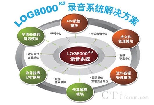 因應(yīng)各種產(chǎn)業(yè)客戶的需求,提供LOG8000KS錄音系統(tǒng)、QM質(zhì)檢模塊、傳真解釋模塊、數(shù)據(jù)儲存?zhèn)湓芾砟K、華語關(guān)鍵詞辨識模塊、業(yè)務(wù)報(bào)表分析模塊、成交件管理模塊等,完整解決方案。