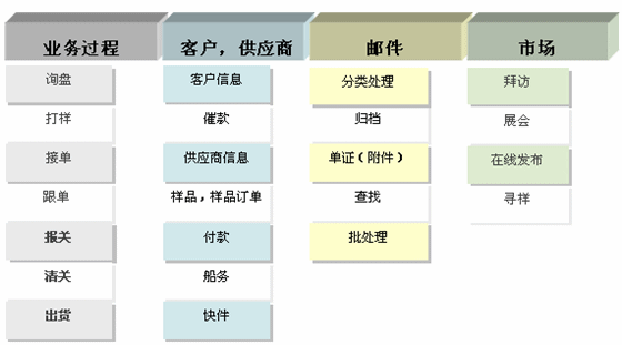 外貿(mào)企業(yè)主要通過Email的方式與客戶及潛在客戶進行業(yè)務聯(lián)系。由于一般Email系統(tǒng)的客戶端都是相對獨立的,業(yè)務郵件都分散在各業(yè)務員的Email系統(tǒng)中,客戶資源的統(tǒng)一管理、Email的監(jiān)督、審批、歸檔管理是使外貿(mào)企業(yè)頭疼的問題。