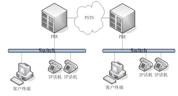 - 普通網(wǎng)絡(luò)結(jié)構(gòu):適用用于中型企業(yè)。在不同地域有公司分部,各分部之間通訊需要通過PSTN,每個分部都有自己的PBX。相對于每個分部而言,采用的是簡單網(wǎng)絡(luò)結(jié)構(gòu)。