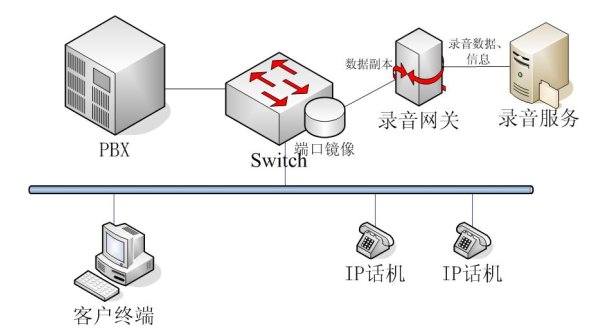 NETLOG VOIP語音記錄系統(tǒng)可以方便靈活的支持任何網(wǎng)絡(luò)結(jié)構(gòu),并可以根據(jù)用戶要求指定工作的方式。由于采用端口鏡像技術(shù),如果要直接采用Switch連接,則要求Switch必須支持端口鏡像功能;如果Switch不支持端口鏡像,則將所有要錄音的話機與錄音網(wǎng)關(guān)連接在同一個集線器上,錄音網(wǎng)關(guān)支持這種工作方式。