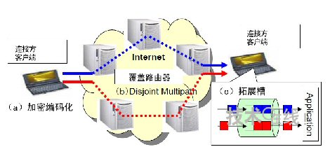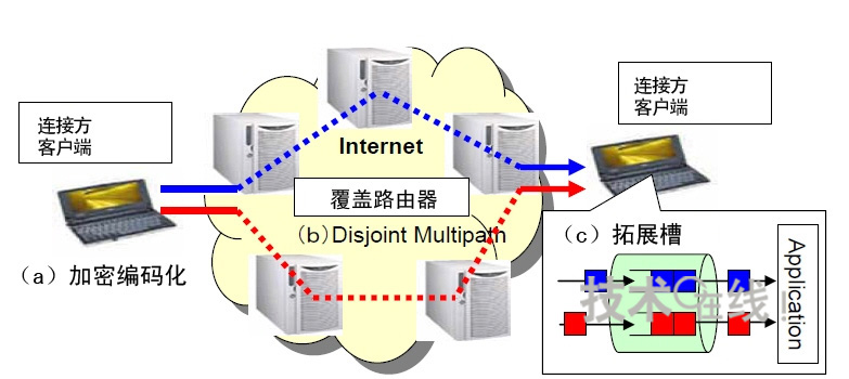 由于是利用多路徑路由發(fā)送分割的數(shù)據(jù),1條路徑被竊聽只會有部分分割數(shù)據(jù)被竊聽。不過,如果發(fā)送分割數(shù)據(jù)的全部路徑都被竊聽,分割數(shù)據(jù)也可能全部流出。為此,此次的秘密通信系統(tǒng)設(shè)想采用基于覆蓋路由器的網(wǎng)絡(luò)(覆蓋網(wǎng)絡(luò)),將全部數(shù)據(jù)被竊聽的可能性減小到了接近0。這是因?yàn)楦采w路由器的通信路徑能夠進(jìn)行實(shí)時切換。此次的保密通話系統(tǒng)將在覆蓋網(wǎng)絡(luò)達(dá)到實(shí)用化水平時投產(chǎn)實(shí)用。計(jì)劃在3~4年內(nèi)實(shí)現(xiàn)。
