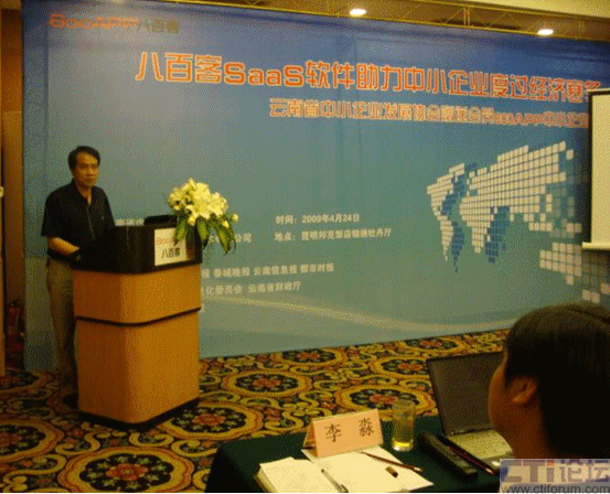 CTI論壇(ctiforum)05月07日消息: 4月24日下午,由云南省中小企業(yè)發(fā)展協(xié)會主辦、八百客(北京)軟件有限公司協(xié)辦的“八百客SaaS軟件助力中小企業(yè)度過經(jīng)濟(jì)寒冬——云南省中小企業(yè)發(fā)展協(xié)會贈送會員800APP中小企業(yè)版活動”在昆明邦克飯店隆重舉行。云南省中小企業(yè)發(fā)展協(xié)會秘書長華松、八百客首席應(yīng)用專家高少義與來自云南省近100家的中小企業(yè)代表,共同探討了如何通過信息化建設(shè)方式來幫助中小企業(yè)獲得商業(yè)機(jī)會,把握商機(jī),提高企業(yè)經(jīng)營業(yè)績。