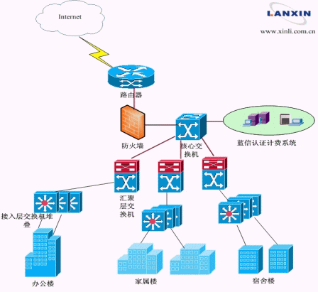 系統(tǒng)部署于解放軍后勤工程學院網絡中心機房,通過與交換機的配合實現(xiàn)用戶的安全認證、多樣計費及有效管理。此次項目的順利穩(wěn)定運行,得到了校方及電信方對藍信產品的一致認可。