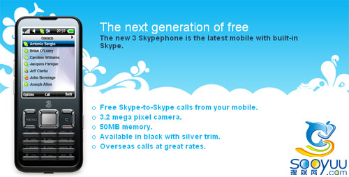 日前 英國運營商宣布,新一代的Skypephone S2將正式上市。自從2008年9月推出具備VoIP功能的手機之后,運營商3獲得了絕大成功,據(jù)悉,該公司還將于今年第四季度推出另外一款Skypephone。