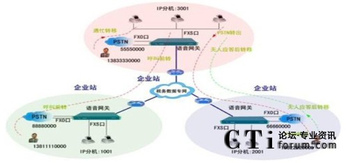 從外部撥打進(jìn)來(lái),不改變客戶撥號(hào)習(xí)慣;從內(nèi)部撥出去,通過(guò)不同的被叫前綴,智能路由選擇走VoIP電話線路或走PSTN線路,不改變?cè)械膿芴?hào)習(xí)慣。