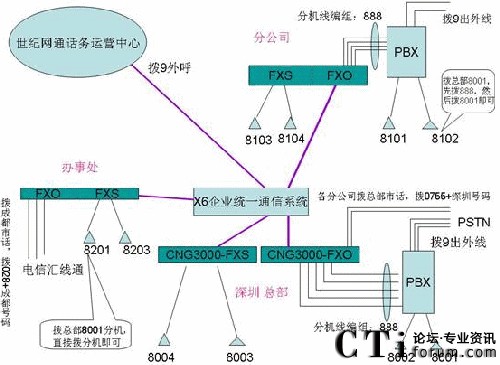 總公司和各個(gè)分公司之間語音電話和傳真交流密集,并且每周會(huì)有1~2次10人以內(nèi)的電話會(huì)議召開。客戶現(xiàn)在公布出去的是總公司深圳的號(hào)碼 075526668888,各分公司公布當(dāng)?shù)氐氖性捥?hào)碼或業(yè)務(wù)人員的手機(jī)。